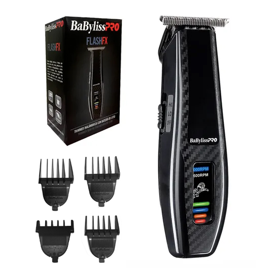 Trimmer delgada, moderna y liviana que produce poco calor y ruido, perfecta para el contorneo, dibujos y diseños, y otros cortes de precisión. guías Removibles hacen de la recortadora Flash FX una excelente herramienta para cuidar la barba, las patillas y la nuca.